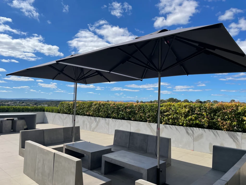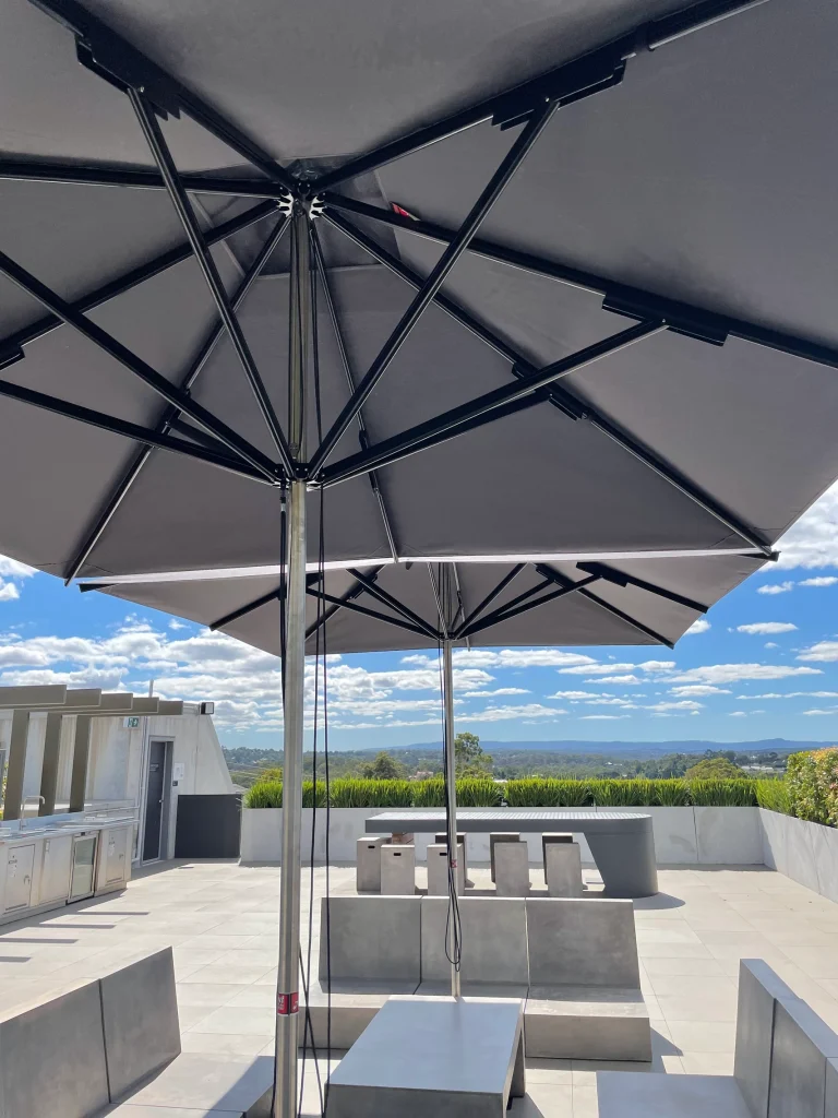 Eden Apartments in Templestowe installed some cafe umbrella with a stainless steel pole upgrade in their outdoor seating area, complimenting a very urban/metro themed recreation area.